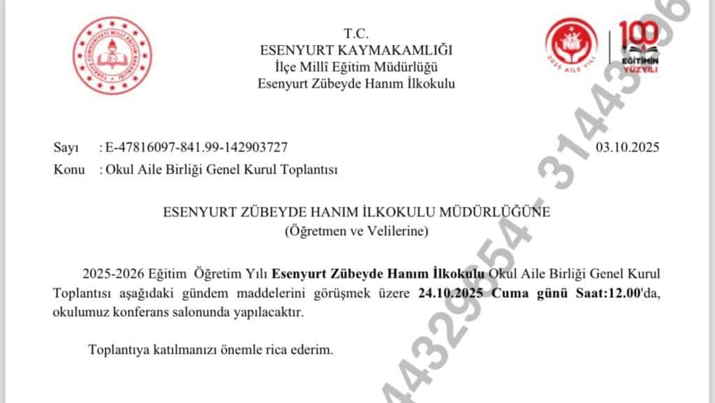 Toplantı, 24.10.2025 Cuma günü saat 12.00 de Okulumuz Konferans Salonunda yapılacaktır.